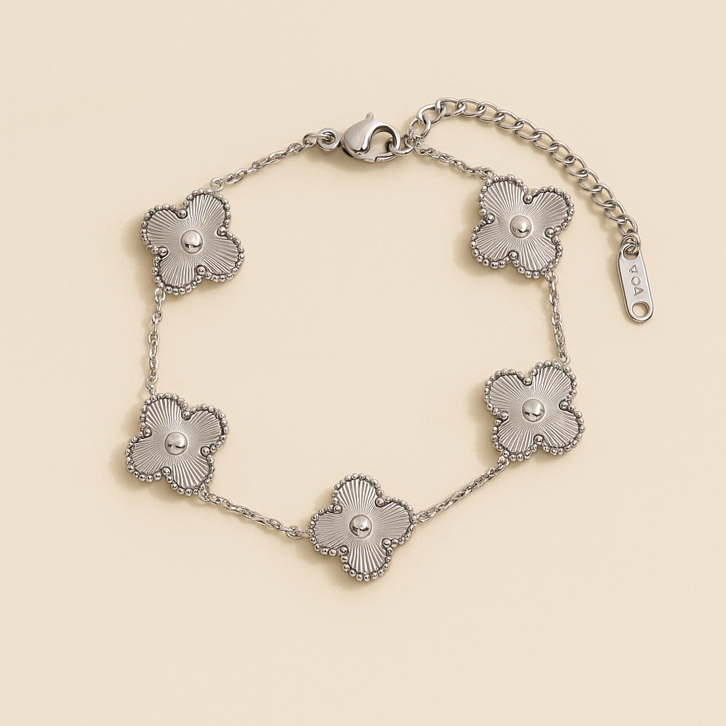 Discover timeless elegance with this Silver Clover Bracelet, expertly crafted from premium titanium steel and finished with luxurious 18k gold plating. Designed for durability and everyday wear, its unique clover design adds sophistication and charm to any outfit. A must-have accessory that perfectly blends strength, style, and elegance